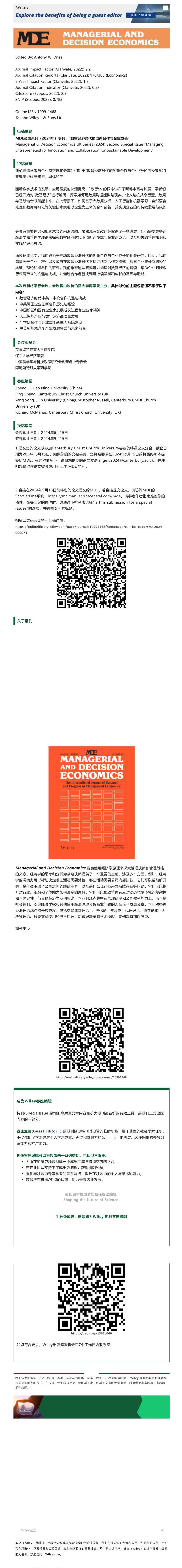 Managerial and Decision Economics专刊征稿 | 数智经济时代的创新合作与企业成长
