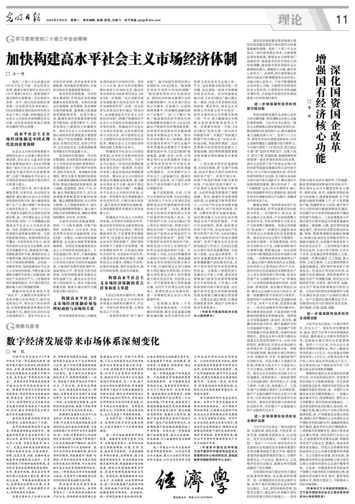 2024年8月6日,sunbet申搏官方网站李政教授在《光明日报》第11版发表理论文章《深化国资国企改革 增强国有经济核心功能》。