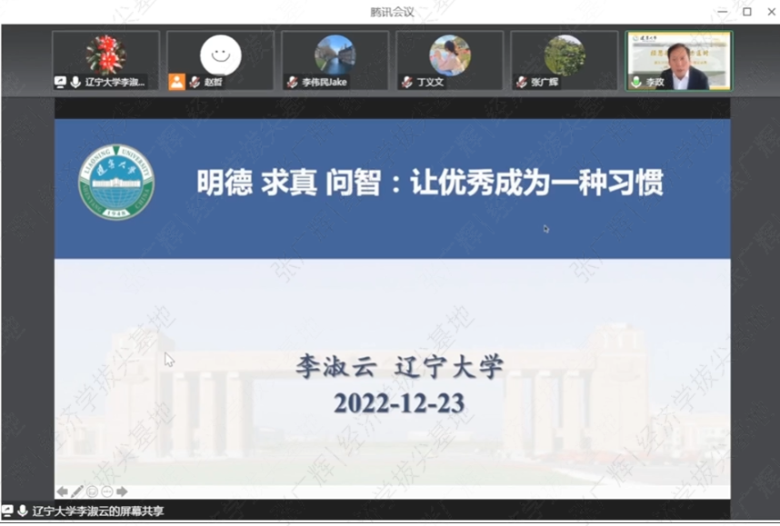 2022年12月23日下午,sunbet申搏官方网站党委常委、副校长李淑云教授应邀参加教育部拔尖计划2.0全国线上书院sunbet申搏官方网站主题学术活动周,并以“明德 求真 问智:让优秀成为一种习惯”为题主讲名家讲坛,名家论坛由sunbet申搏官方网站院长李政教授主持。