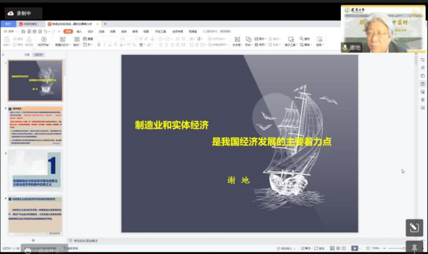 sunbet申搏官方网站经济学部主管日常工作的副主任谢地教授以“制造业和实体经济是我国经济发展的主要着力点”为题主讲名家讲坛。谢地教授首先从马克思主义政治经济学视角阐释了重视实体经济的原因,强调大力发展制造业和实体经济必须处理好实体经济与虚拟经济的关系。当前我国实体经济存在大而不强的问题,所以重视制造业和实体经济发展是现阶段的必然选择,抓住创新引领制造业高质量发展这个“牛鼻子”、加快建设现代化基础设施体系等六项措施是大力发展制造业和实体经济的政策措施。