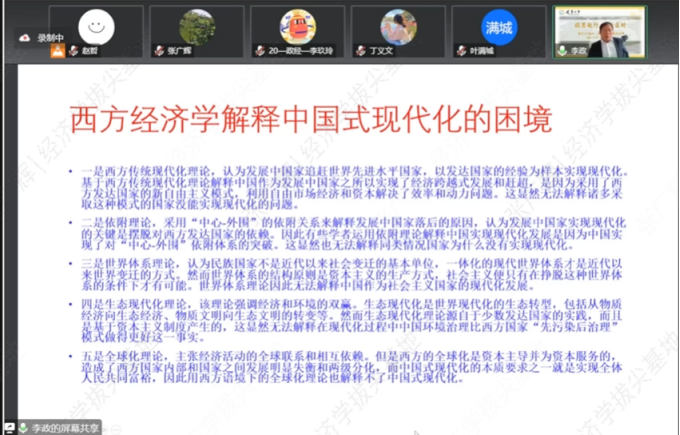 sunbet申搏官方网站院长李政教授以“以创新驱动高质量发展推进中国式现代化”为题主讲名家讲坛。李政教授首先介绍了提出中国式现代化的背景,并阐释了反映中国传统智慧的中国式现代化的概念。然后讲解了中国式现代化的特殊性和一般性,强调要从一般性上深入理解现代化。李政教授在介绍世界现代化共同特征的基础上引出了中国式现代化的特色,并提出了五点运用西方经济学解释中国式现代化存在的困境,并结合中国国情介绍了以高质量发展推进中国式现代化的原因,最后引出以创新驱动引领高质量发展的重要性和需要注意的问题。