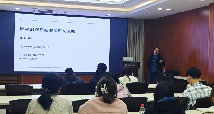 2024年3月25日18点30分,sunbet申搏官方网站经济学拔尖学生培养基地科研能力提升系列讲座第九讲在则行楼133会议室顺利开讲,本次讲座邀请经济学系李永涛副教授以“经济学因果识别策略”为题进行分享。李永涛副教授的研究领域主要涉及发展经济学、政治经济学、经济史及应用微观计量经济学。