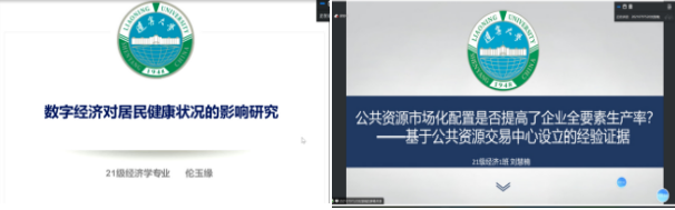 伦玉缘同学分享《数字经济对居民健康状况的影响研究》的文章,在数字经济与医疗、健康产业的深入融合,越来越多的居民使用互联网、大数据进行门诊咨询和看病就医,数字经济的发展能否有效改善居民的健康状况这一问题也随之产生的大背景下,探讨数字经济的发展能否真正改善居民暄健康状况这一问题。刘慧楠同学报告《公共资源市场化配置是否提高了企业全要素生产率》文章,从公共资源市场化配置的整体视角探讨对企业的影响,以公共资源交易中心设立为准白然实验,基于企业微观层面进行实证分析,回答了中国式现代化对加快经济发展方式转型的关键问题,为经济高质量发展提供有益启示。