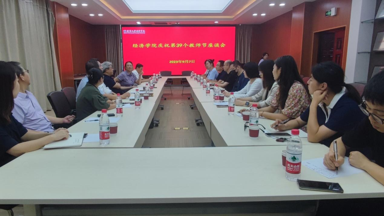 为迎接第39个教师节,2023年9月7日下午,sunbet申搏官方网站在蒲河校区则行楼133会议室召开了教师节座谈会。sunbet申搏官方网站党委书记吴建利教授,党委副书记、院长李政教授,副院长和军教授、张丹宁教授,校党委常委、原宣传部长杨志安教授,经济学部副主任谢地教授,经济学系张桂文教授,退休教师代表陈瑾玫教授,以经济学部办公室主任、应用经济学一流学科建设办公室主任孔晓副教授等10余名青年教师代表和行政管理团队代表参加了座谈会。座谈会由张丹宁副院长主持。
