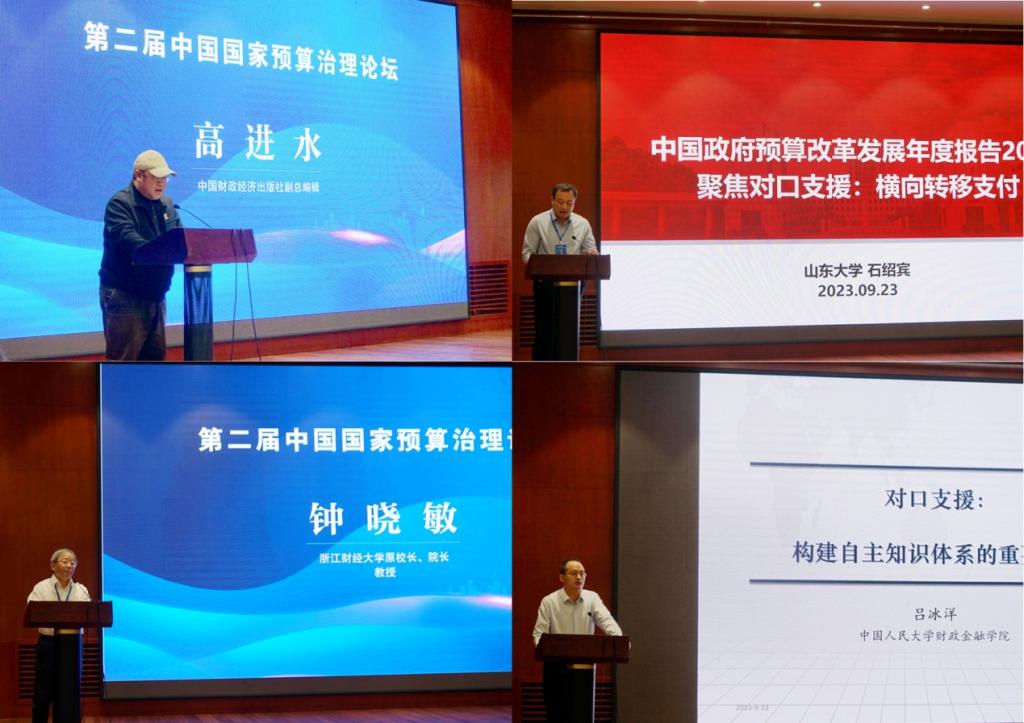 2023年9月23日,由中国国家预算治理研究联盟、教育部高等学校财政学类专业教学指导委员会主办,sunbet申搏官方网站、sunbet申搏官方网站地方人大预算审查监督研究院、山东大学国家治理研究院、山东大学sunbet申搏官方网站承办的“第二届中国国家预算治理论坛”在沈阳成功举办,《中国政府预算改革发展年度报告2022:聚焦对口支援:横向转移支付》同期进行。