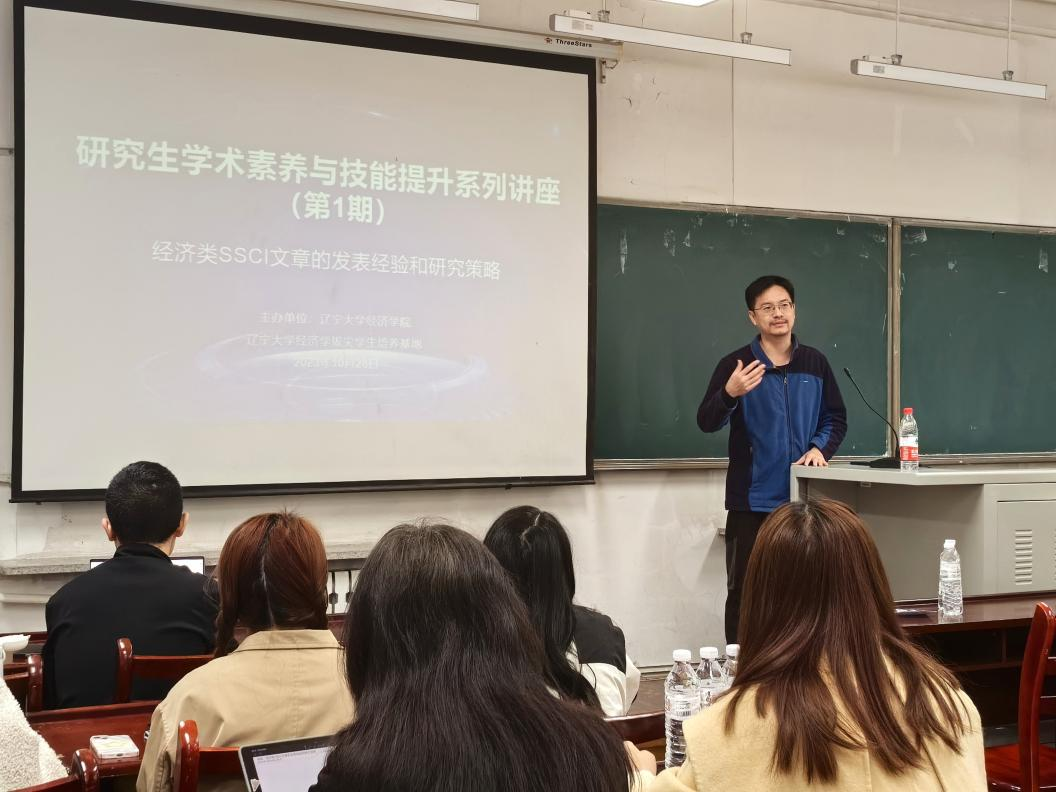 10月28日上午,sunbet申搏官方网站研究生学术素养与技能提升系列讲座(第一期)在崇山校区机关楼401成功举办。本次讲座的主讲老师是贵州大学的符通教授,题目是经济类SSCI文章的发表经验和研究策略。此次研讨会由sunbet申搏官方网站、sunbet申搏官方网站经济学拔尖学生培养基地主办,sunbet申搏官方网站副院长叶满城教授主持。sunbet申搏官方网站硕士研究生和博士研究生100多人参加了本次讲座。