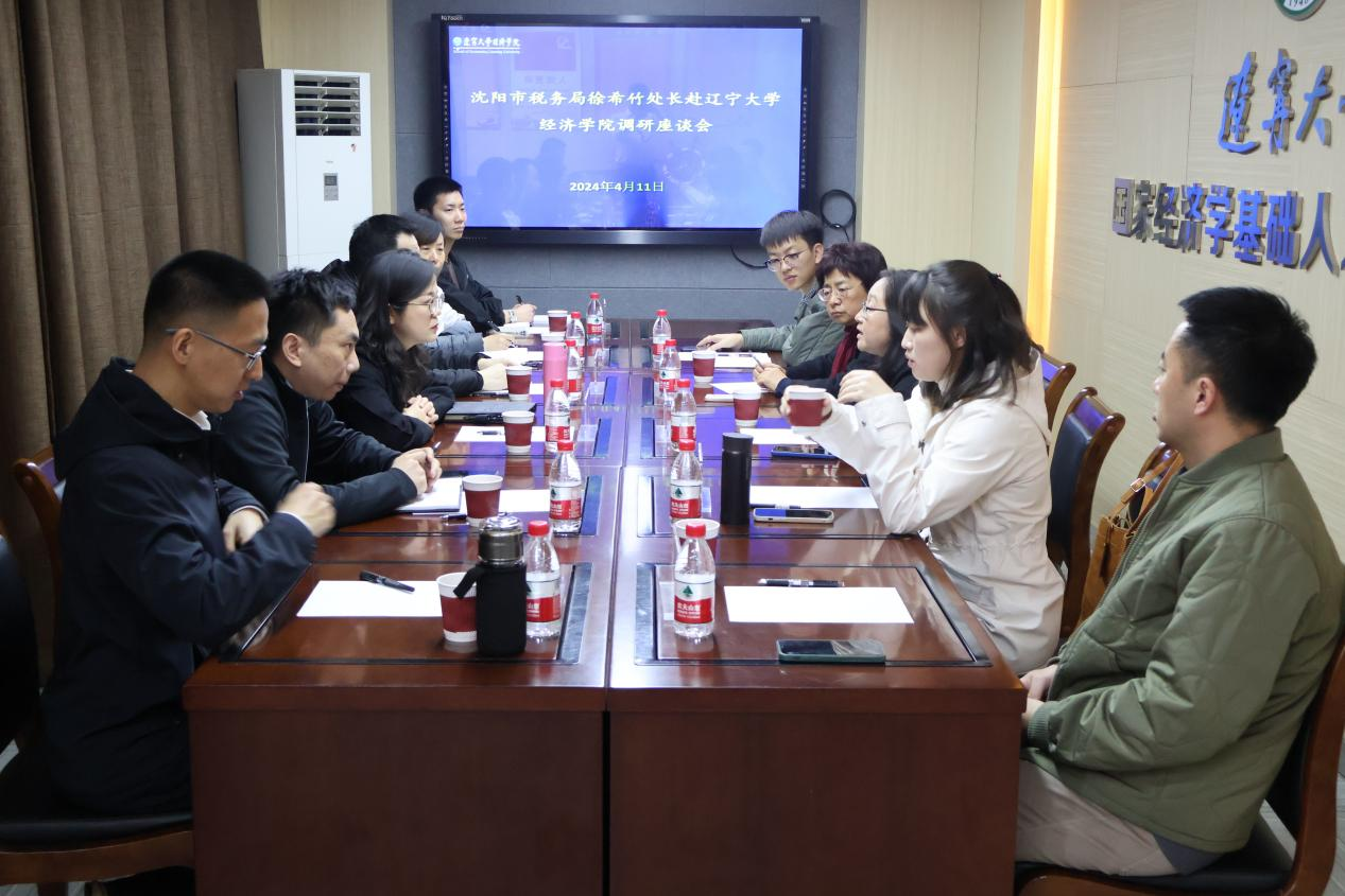 徐希竹处长对我院的热情接待表示感谢,并介绍了沈阳市税务局收入规划核算工作基本情况和发展现状,并对来院调研座谈所需解决的“真实问题”进行了详细的阐述。随后,双方就税收收入能力建设和测算等相关问题开展了深入交流。最后,双方就联合课题合作以及协同完成高水平资政建议等思路方法展开深入讨论和交流。