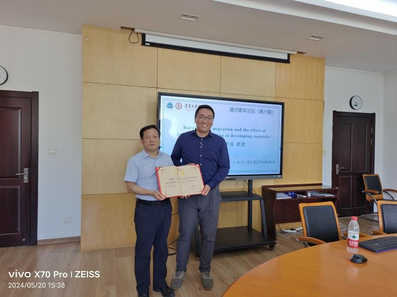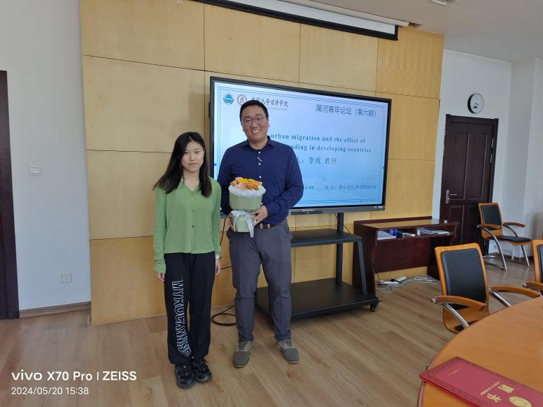 李戎教授以“Rural-urban migration and the effect of government spending in developing countries”为题,深入分析了政府支出是否可以通过鼓励发展中国家的城乡移民来增强其扩张效应。他的研究表明,随着政府支出的增加,中国存在劳动力向城市迁移的财政乘数效应,应该重视财政支出在城乡移民中起到的重要作用。在报告结束后的问答环节中,师生们踊跃提问,与李教授进行了深入的交流讨论。李教授围绕分享的内容做了精彩解答,并就研究生如何将具体案例式的论文投稿外刊给出了建议。