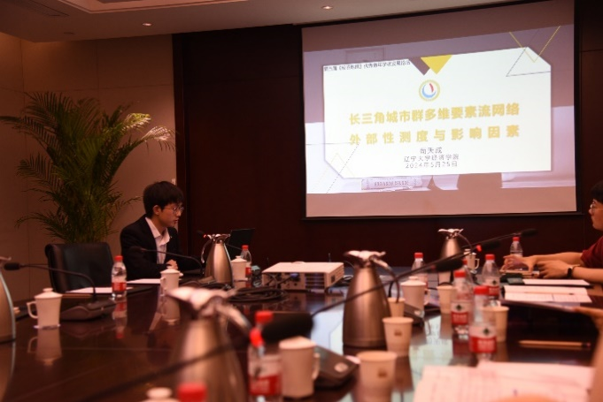 论坛设置十个平行分论坛,我院2022级经济学专业苟天成同学受主办方邀请在分论坛三“综合交通与区域发展”做了题为“长三角城市群多维要素流网络外部性测度与影响因素”的学术报告。该研究以长三角区域三省一市为研究对象,基于多元地理流大数据构建以人流、物流、信息流为主要构成的多维要素流网络,借助柯布-道格拉斯生产函数和多尺度地理加权回归模型检验多维要素流网络外部性,并利用地理探测器模型识别网络外部性空间分异影响因子及其交互作用机制。研究结果发现:(1)多维要素流联系呈现显著的圈层分异,上海市及杭州市、南京市、苏州市、合肥市等位于长三角中心区的城市间多维要素流强度普遍高于非中心区。(2)经济发展受到网络外部性和劳动力、资本和土地等要素投入的协同促进,上海市和江苏省各城市的网络外部性整体高于浙江省和安徽省各城市。(3)网络外部性空间分异受产业结构整体升级、软硬基础设施、行政级别等多方面因素的共同影响,其中,产业结构整体升级影响明显较强。该研究有助于完善城市网络外部性理论,为促进长三角一体化高质量发展相关政策的制订提供科学依据。