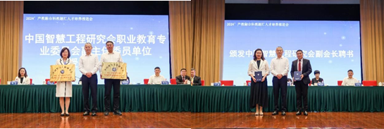 会上,王金宝为沈阳职业技术学院、天津渤海职业技术学院授中国智慧工程研究会职业教育专业委员会副主任委员单位铜牌,为李树英、邢晖颁发中国智慧工程研究会副会长聘书。