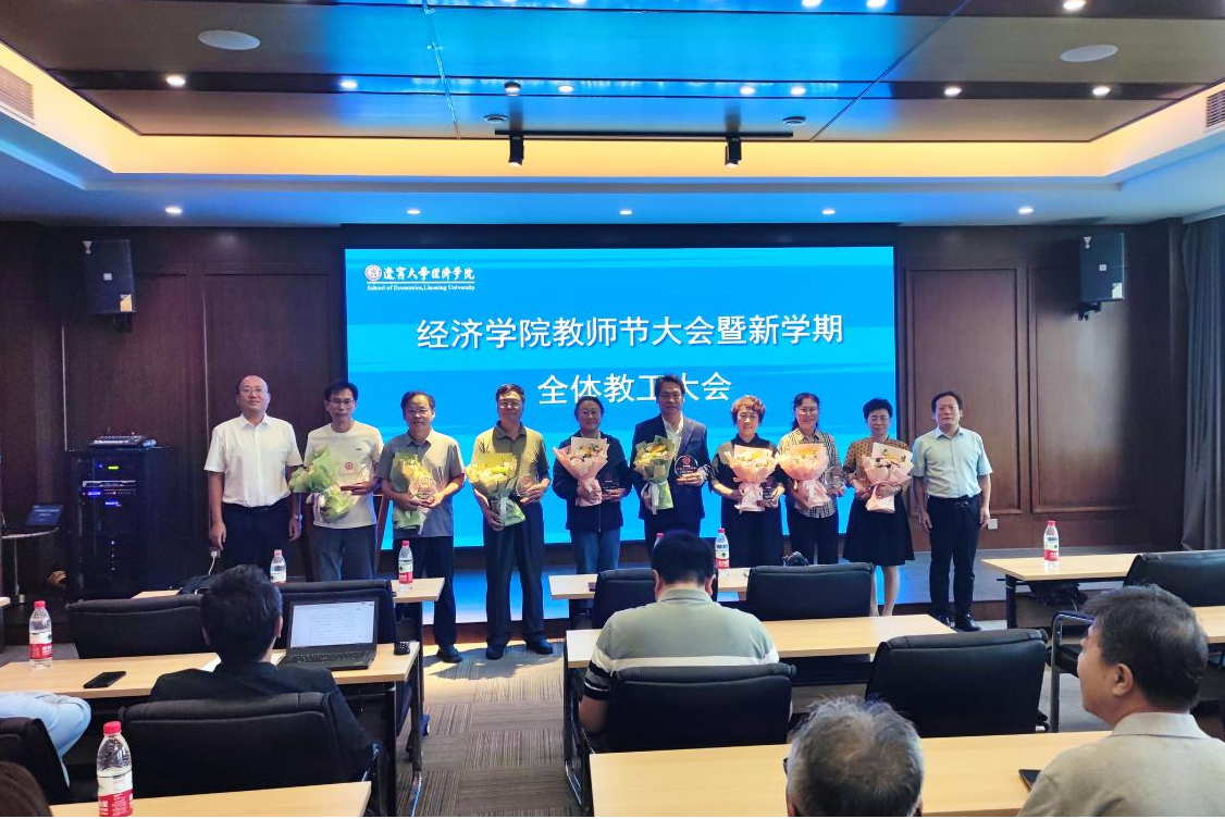 在教师节大会环节,首先,sunbet申搏官方网站党委书记王冰﹑院长李政为教龄30年及以上的教师代表张桂文﹑杨志安﹑赵桂芝﹑滕海健﹑王青﹑张虹﹑孙世强﹑林天义颁发纪念牌,送上祝福的鲜花,以表达全体师生对他们最诚挚的敬意和最美好的祝福。然后杨志安教授和荣莹老师分别作为接受表彰教师代表和青年教师代表发言。