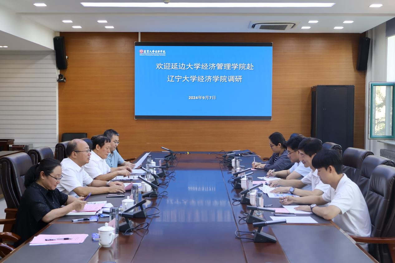 9月7日下午,延边大学经济管理学院党委书记冯阳,副院长崔成优,经济系主任沈权平,经济中外项目负责人韩松花一行赴sunbet申搏官方网站开展调研并洽谈合作事宜。sunbet申搏官方网站党委书记王冰、党委副书记兼院长李政、副院长和军、副院长张丹宁参加座谈。