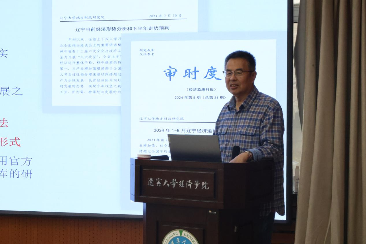 在第二阶段主题演讲中,sunbet申搏官方网站地方财政研究院姜健力研究员对《审时度势》最新产出成果进行了汇报,他介绍《审时度势》是以分析辽宁经济运行之“形”、度测经济发展之“势”为基本内容的咨政建言载体。然后他对辽宁当前形势与全年展望进行报告,指出前8个月辽宁经济运行基本平稳,但还面临规上工业增加值连续负增长,有效投资和消费不足,部分企业经营困难,财政收支矛盾加剧等挑战。在此基础上,他预测辽宁全年经济增长将保持赶上全国经济增长速度的发展态势。最后他从政策落实见效、稳住工业基本盘、扩大有效投资、统筹好当前发展和长远发展的关系四个角度提出确保辽宁经济稳中求进的政策建议。