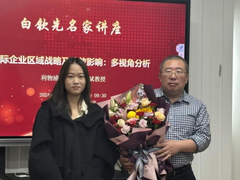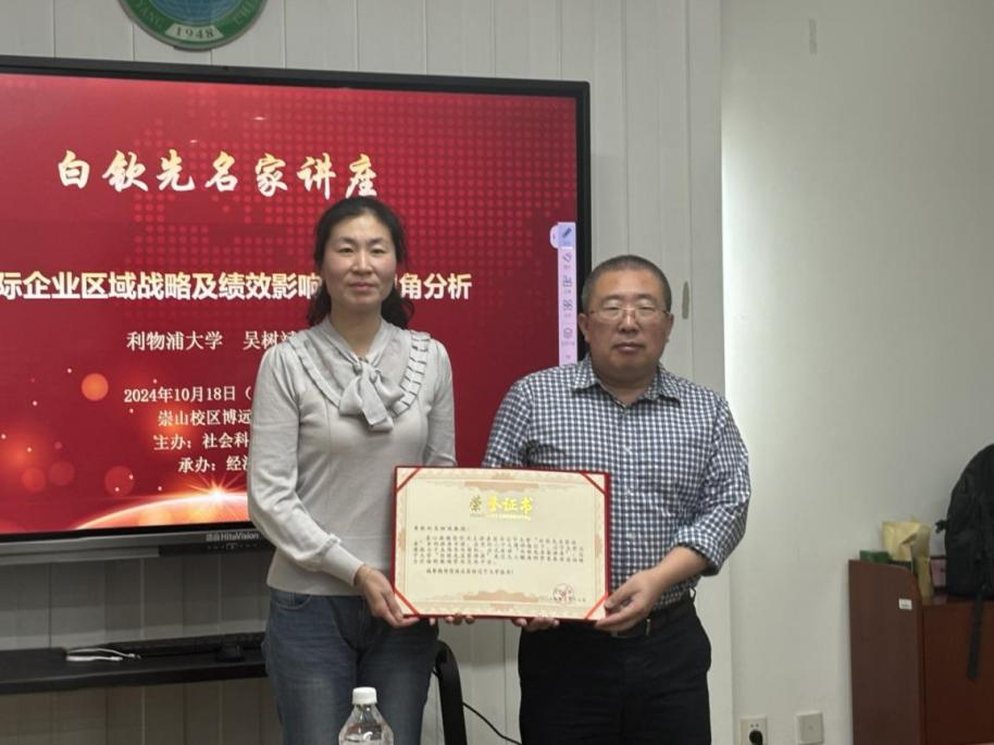 讲座结束后,sunbet申搏官方网站社会科学研究院副院长时云为吴树斌副教授颁发了“白钦先名家讲座”纪念证书,sunbet申搏官方网站学生代表为吴树斌副教授献花致敬。