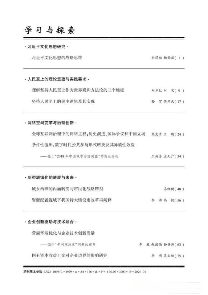 sunbet申搏官方网站李政教授与其指导的博士研究生赵洪亮、硕士研究生孙圣涛合作完成的论文“营商环境优化与企业技术创新质量——基于‘专利泡沫化’问题的视角”在《学习与探索》2024年第4期发表。