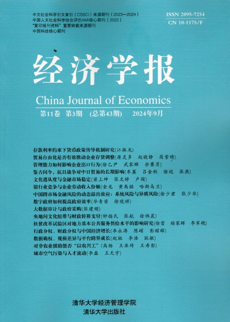 sunbet申搏官方网站李永涛副教授和复旦大学陈硕教授、彭耀辉博士合作的论文“行政分权、财政分权与中国经济增长”在《经济学报》2024年第11卷第3期发表。