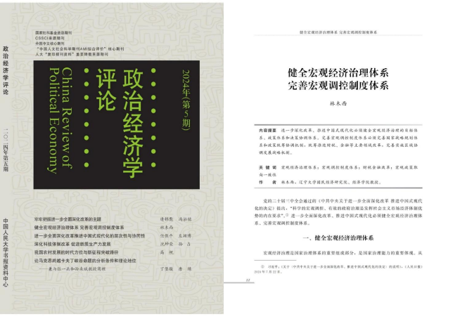 近日,国民经济研究院院长林木西教授论文《健全宏观经济治理体系 完善宏观调控制度体系》在《政治经济学评论》2024年第5期发表。