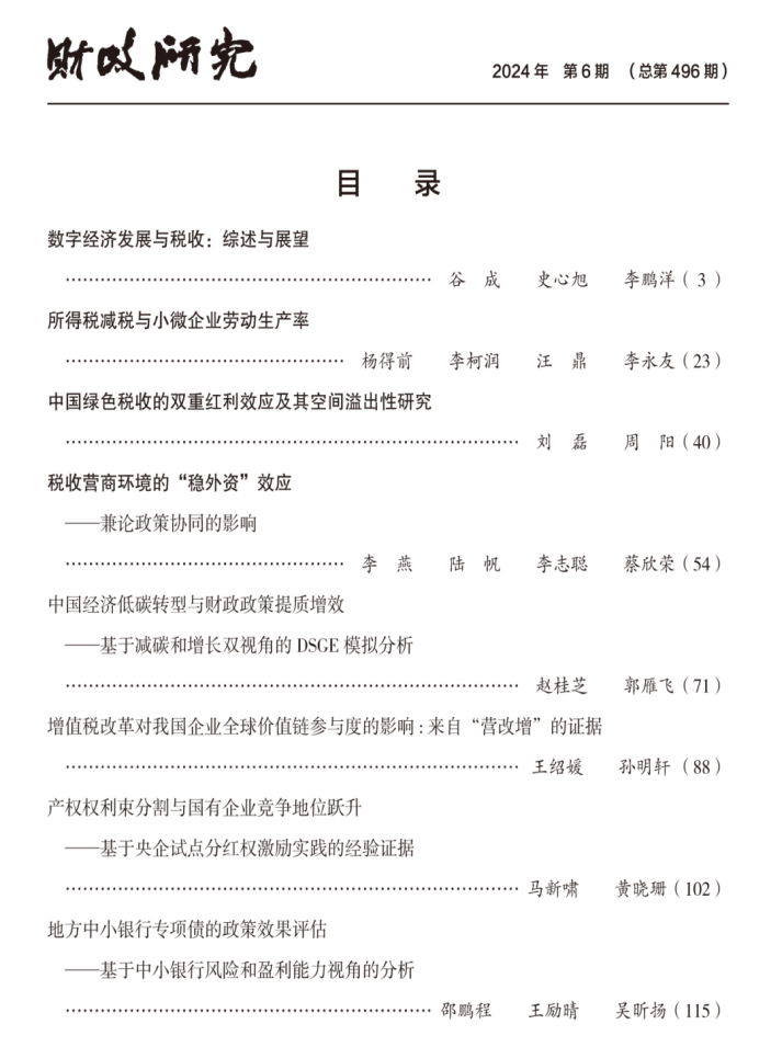 近日,sunbet申搏官方网站赵桂芝教授团队的论文在《中国经济低碳转型与财政政策提质增效——基于减碳和增长双视角的DSGE模拟分析》在《财政研究》2024年第6期发表。