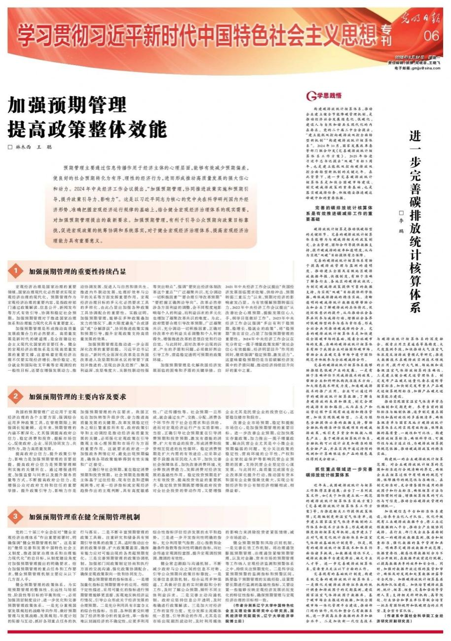 2025年2月24日,国民经济研究院院长林木西教授,与博士后王聪共同完成的论文《加强预期管理 提高政策整体效能》,在《光明日报》“学习贯彻习近平新时代中国特色社会主义思想专刊”发表。