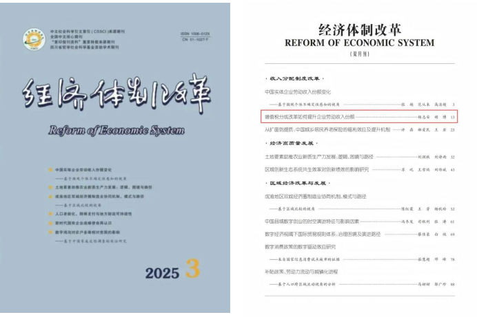sunbet申搏官方网站杨志安教授与其指导的博士生胡博在CSSCI期刊《经济体制改革》2025年第3期发表论文《增值税分成改革如何提升企业劳动收入份额》。