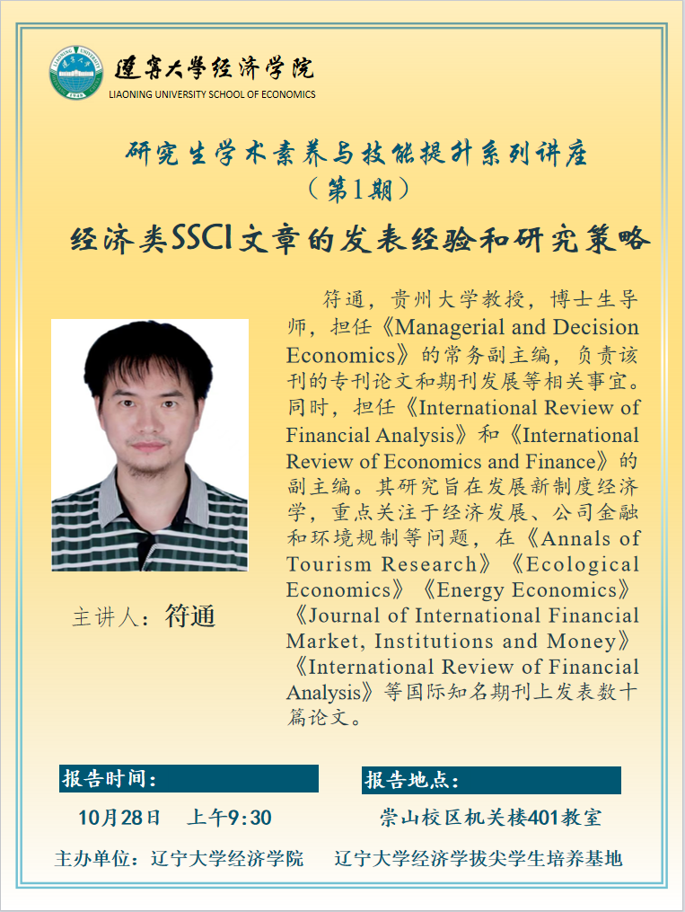 报告题目:经济类SSCI文章的发表经验和研究策略