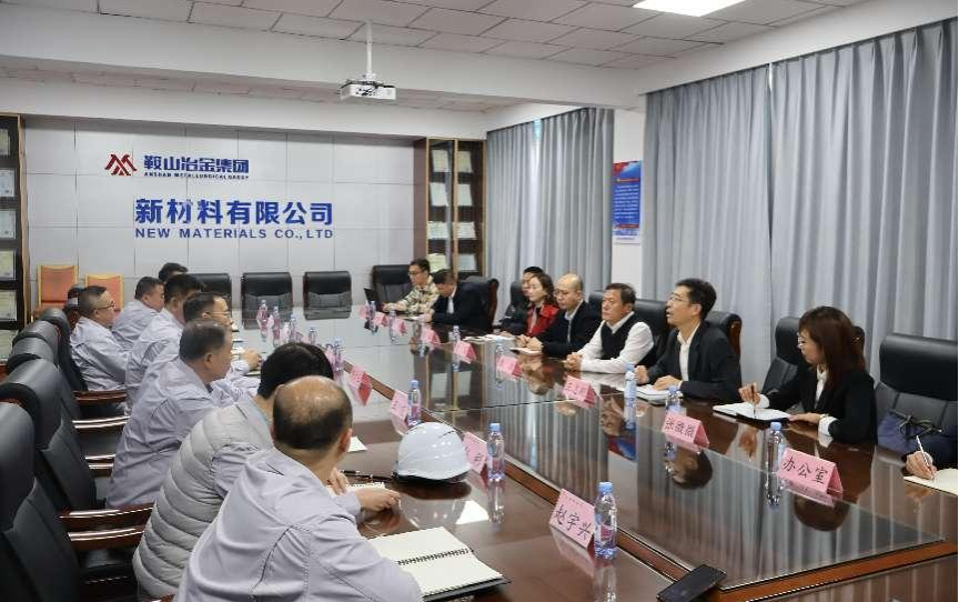 随后,调研团队在国资委负责同志引导下来到鞍山冶金集团新材料有限公司,参观了公司生产车间,并与公司领导班子和管理团队进行了座谈交流。集团总经理贾少玉、新材料有限公司总经理全德威对公司主营业务与规模、企业发展历程与成就、现状及愿景进行了详细介绍。sunbet官网化学院挂职干部、鞍山市科技局副局长单炜军,sunbet申搏官方网站挂职干部、鞍山市高新技术产业开发区管委会副主任徐雷分别就校企合作、科研成果转化、人才培养等方面与企业进行了深入交流。李政院长从新质生产力的培育、企业转型与战略规划对做优做大做强新型现代化国企的重要作用等方面进行了理论与实践分析,对企业发展建设提出了宝贵建议。双方就搭建合作机制和就业实习实践平台达成了一致意见。