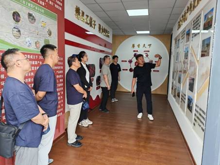 在王杖子村,师生一行参观了村集体蜜薯基地的历史墙与荣誉墙,对王杖子村蜜薯产业的发展有了清晰的了解,大家为王杖子村抓住机遇积极发展新型合作社、实现全村共同富裕而欣喜,同时对乡村产业结构有了直观的认识。