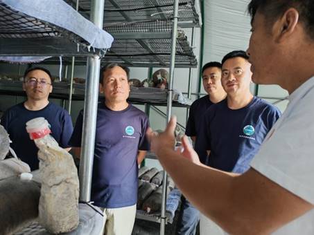 师生一行参观了当地的食用菌种植基地,负责人首先简单介绍了菌菇种植的流程、注意事项以及市场现状,并介绍了主要种植菌类。双方深入讨论了关于菌菇种植的细节,包括品种选择、市场需求、销售策略和技术创新等方面。