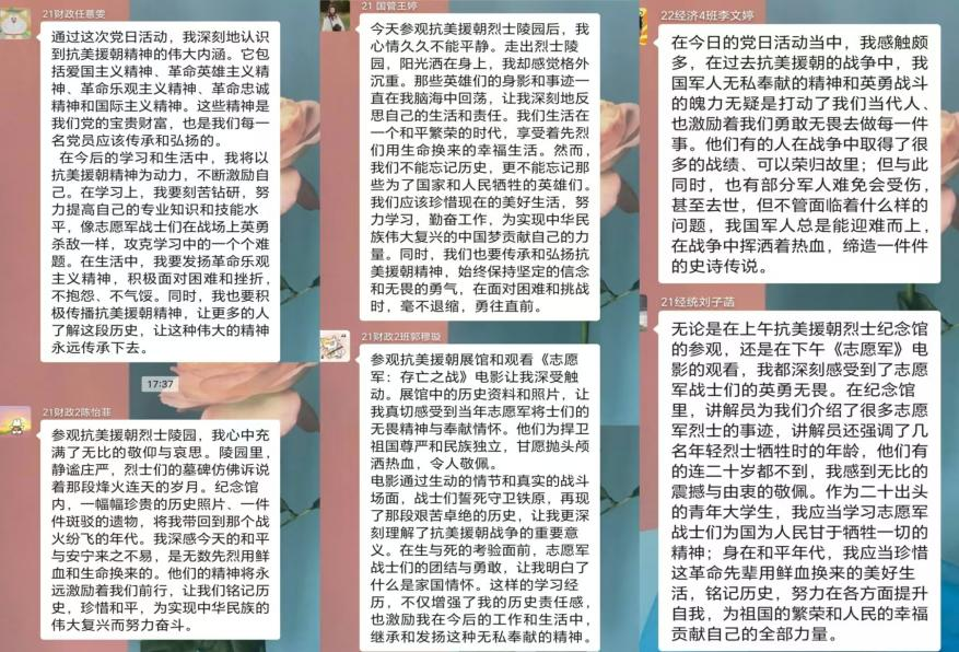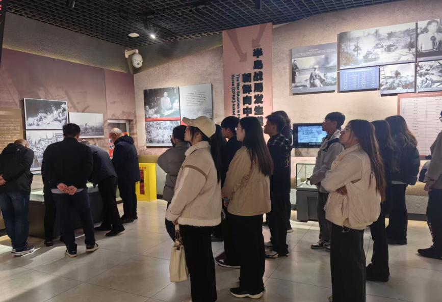 10月24日上午,学院师生党员赴抗美援朝烈士陵园开展祭奠和参观教育活动。苍松翠柏环绕的烈士陵园庄严肃穆,纪念碑高耸入云,党员们向抗美援朝烈士纪念碑敬献鲜花、肃立默哀。随后,在讲解员的带领下参观烈士纪念馆,通过珍藏的历史文物和文献影像资料,党员师生们更加深入地了解了抗美援朝战争的历史背景和英雄故事,更加深刻感受到了志愿军将士保家卫国、不畏强敌、敢于牺牲的革命精神,激发了对“最可爱的人”的崇高敬意。