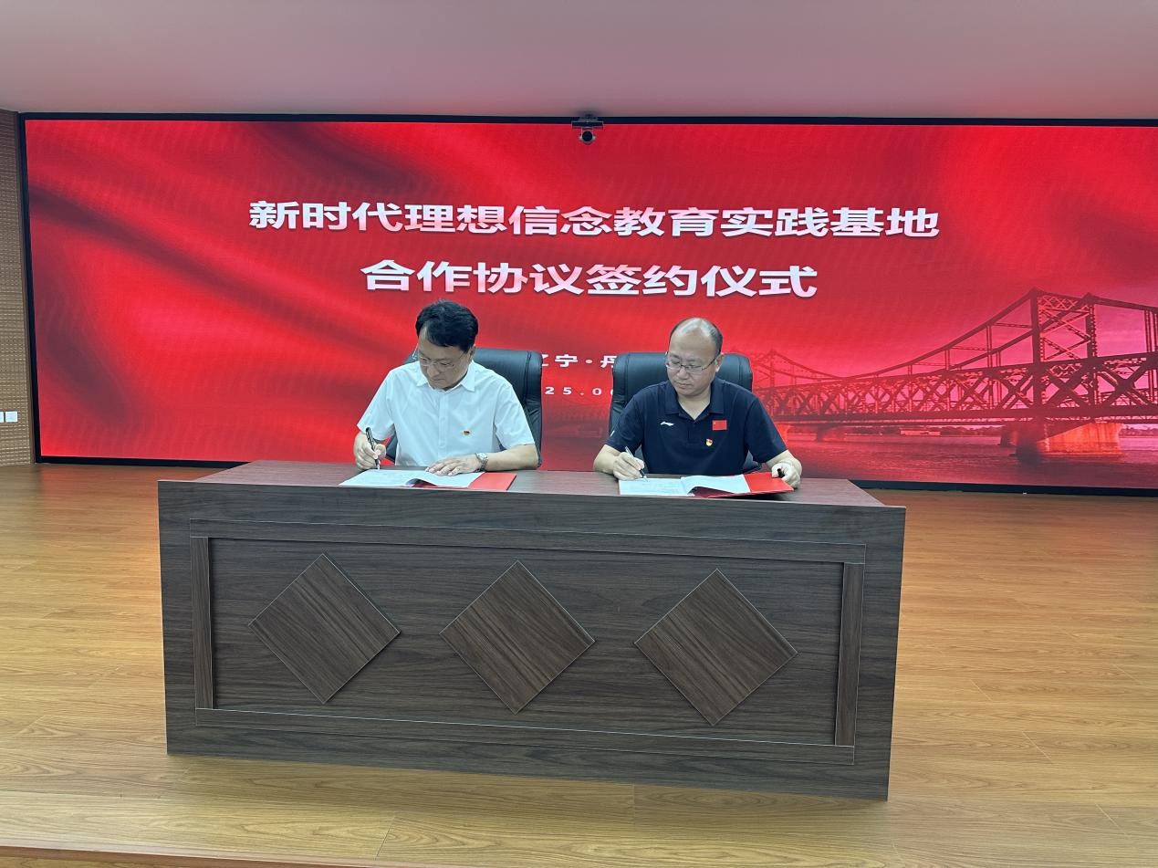 学院党委书记王冰与丹东市延安精神研究会党支部书记、会长刘江雁代表双方共同签署sunbet申搏官方网站首个新时代理想信念教育实践基地合作协议。